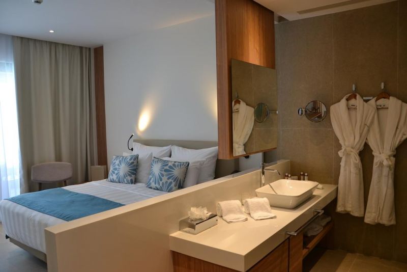 В 67 км от аэропорта, в 63 км от центра г. Родос, в 19 км от поселка Линдос, в местечке Геннади, на берегу моря.