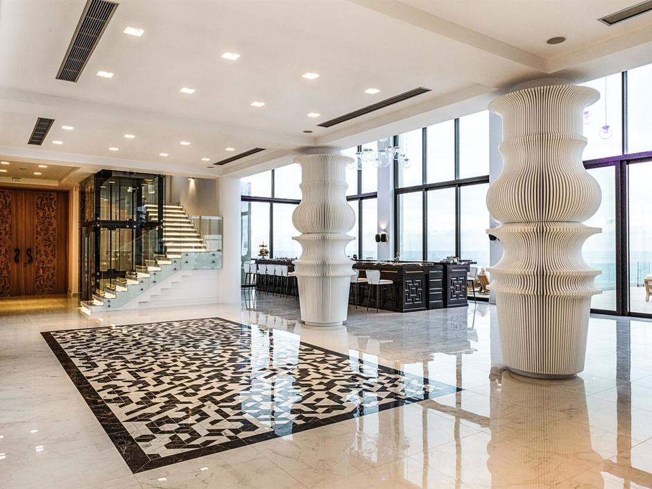 Abaton Collection Suite Sharing Pool (двухуровневый номер с видом на море с верхнего этажа, спальня открытой планировки на верхнем уровне и зона гостиной на первом уровне, осн. кровать — двуспальная или 2 односпальные, доп. — софа, выход к общему бассейну, макс. 3 чел.+инф., 43 кв. м. (общая площадь 73 кв. м.))