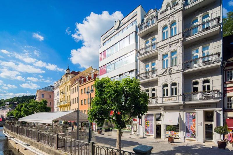 Комплекс апартаментов в центре курорта Карловы Вары, рядом с рекой и Мельничной колоннадой.