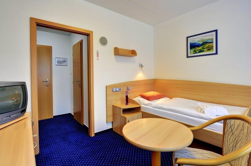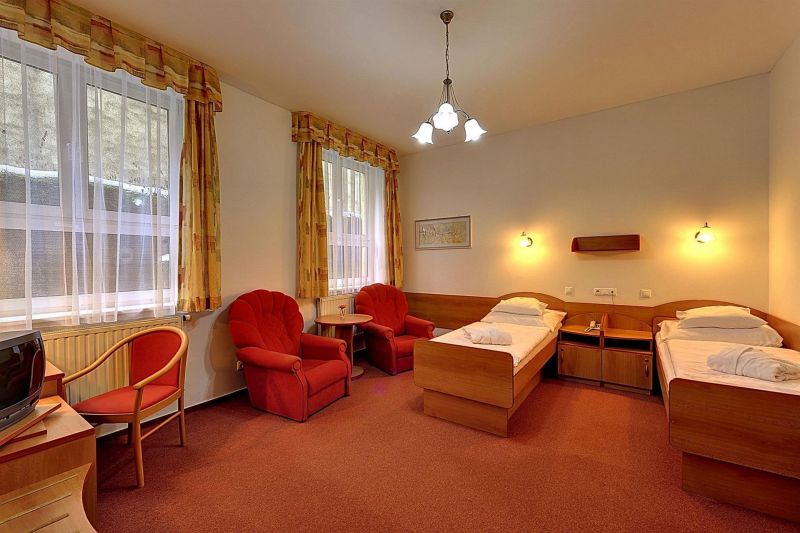 Отель расположен в центре курортной зоны, в нескольких шагах от автобусной остановки, в 26 км от аэропорта Карловых Вар. Последняя реновация номеров - в 2004 году.