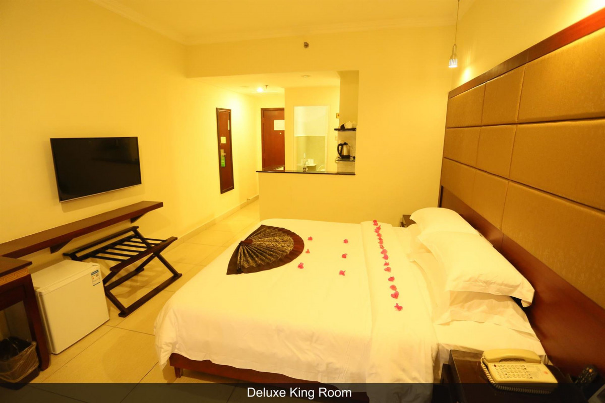 в центре города Санья, городской отель, в 13 км от аэропорта, в 5 км от бухты Дадунхай, в 300 м от пляжа бухты Санья Бей, рядом с популярной пешеходной улицей.