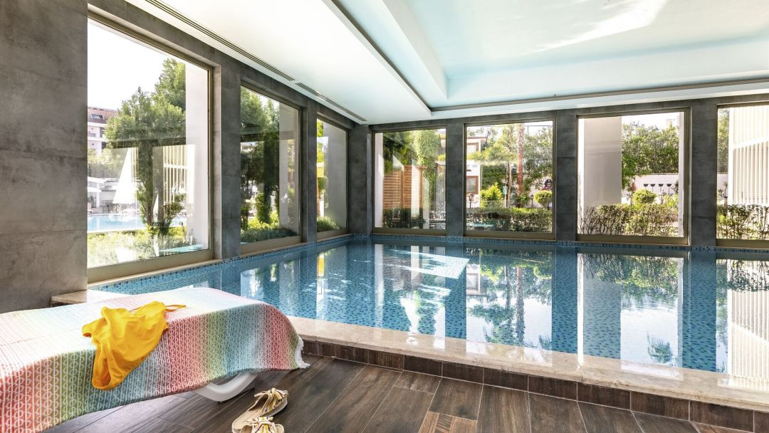 Отель на второй линии, рядом остановки, не вызывая такси, можно самим доехать в Старый город и ТЦ. Очень удобное расположение, есть где погулять. В отеле очень чисто, доброжелательное отношение. Питание супер. До пляжа возят каждые 15 мин., на пляже бар с напитками и полноценным питанием, на обед необязательно возвращаться в отель. Wi Fi работает на всей территории отеля и на пляже. По вечерам детская анимация.