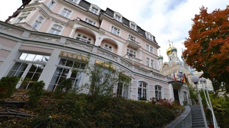 В самом престижном районе Карловых Вар, называемом Вэст-Энд. Это фешенебельный район, его ещё называют районом роскошных вилл, где располагаются, в основном, такие же отели. Он образован тремя улицами, которые направляются к источникам или просто в центр. До ближайшей колоннады с лечебными питьевыми термоминеральными источниками 450 метров.