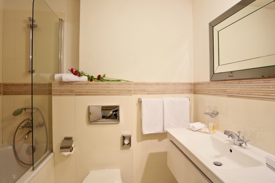 Описание номеров: спутниковое телевидение, телефон, сейф, Wi-Fi (за дополнительную плату), минибар, кофемашина, ванная комната с душем или ванной, фен.