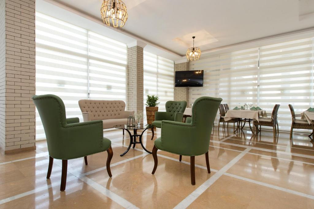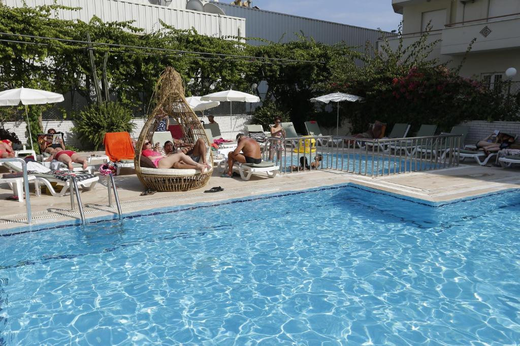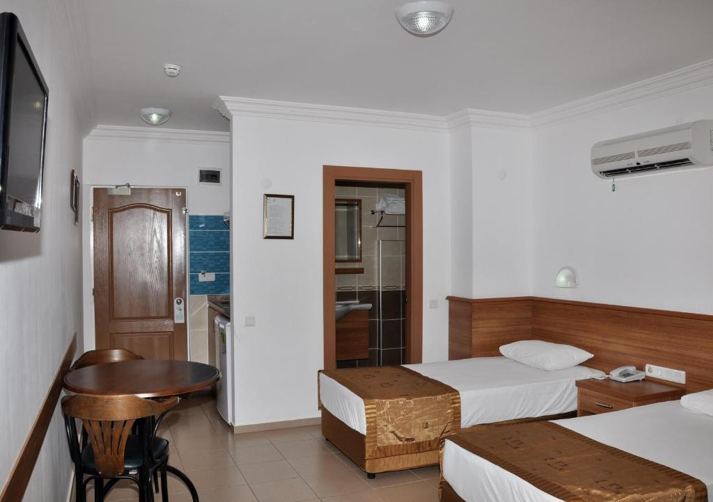Отдыхаем уже последние дни в данном отеле. Все понравилось. Есть мелочи, но в целом мы довольны. У нас был номер 2 комнаты, в спальне все отлично- 2 кровати удобные, большой шкаф, кондиционер; в общей комнате небольшая кухонная зона (плита, холодильник, чайник, тостер, микроволновка) и 2 дивана (потрепанные жизнью конечно но удобные) и телек. Так же балкон довольно большой с обеденной группой. Всё как на фото было заявлено. Выбирая отель обратили внимание что за ним небольшой парк с детской площадкой. Зеленая зона, а не дорога из окна. За парком еще пара отелей но они нам совсем не мешали, никаких дискотек на пол ночи не было, музыку с 10 вечера всегда выключали, да и включали редко. Отель стоит на 2 линии так что шума от дороги нет, до моря 5 минут. Мы специально просили этаж повыше нам дали 3. Есть лифт. Рядом мигрос - магазин очень удобно. Брали машину в прокат оставляли на стоянке магазина проблем не было и видно из окна. На ресепшене и русский и английский понимают очень приветливый и доброжелательный персонал. Пару раз были гриль пати, так же утром пишут варианты обеда там от 15-20 евро было но мы никогда там не ели поэтому не могу сказать по качеству. Так же хороший бассейн и бар есть. По мелочам… не мешало бы обновить окраску номеров. (Краска не отваливается конечно но видно в некоторых местах что-то подкрашивали и смотрится не аккуратно); покрывала которые вместо одеял жестковаты, особенно чувствуется после загара - не очень комфортно; над кухонной зоной не мешало бы сделать свет, готовить темновато; обновить кухонные приборы и посуду; поменять диваны в общей комнате; поменять потолочные светильники на что то более уютное. Ну в принципе и все. Еще под нашим балконом на цепи собака видимо кого-то из персонала, периодически лает и я не представляю если жить на 1 этаже отеля. Еще в 9 утра на разгрузку магазина приезжает фура, не очень, но шумит. Пляж отличный, песочный. На набережной тихо вечерами. Если пройти минут 20-30 в сторону центра то там вся торговля музон и т.п. Нам с ребенком здесь было комфортно.