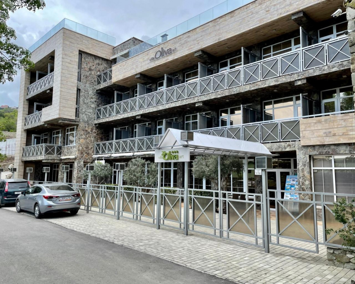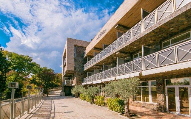 Небольшой, но очень симпатичный, отель расположился на второй линии от моря в пос.Утес (Большая Алушта), Крым. В отеле номерной фонд различный: бюджетные номера, расположенные на нижних этажах, где стеклянная дверь и окно выходят в коридор; стандартные, в том числе с потрясающими видами на море, и улучшенные номера. Отель новый. Просто и красиво оформлен. На 4 этаже отеля есть бассейн с водой, в которую добавляют морскую соль, сауна и тренажерный зал. Для клиентов отеля эти услуги бесплатны. Очень понравилась вся команда отеля. Вежливый и обходительный персонал, включая сотрудников ресторана. Хочется сказать всем "Огромное спасибо". Так держать! В отеле есть свой ресторанчик. Завтраки очень вкусные и "обильные". Небольшой "закусочный стол", и блюда на заказ, который вы делаете на следующий день. Выбор хороший. Все, что мы пробовали в ресторане на обед\ужин, у нас вызывало восторг. Рекомендую попробовать: фирменный сливочный супчик-пюре с барабулькой, салат крымский, улов дня, греческий салат с морскими деликатесами, борщ. Цены средние. Например, порция сливочного супа-пюре с барабулькой стоила 400 руб., такая же цена "улова дня", крымский салат с теплыми баклажанами и бахчисарайскими томатами стоил 250 руб. До моря идти недалеко. Спуститься по лесенке, пройти через парк и перед вашим взором набережная пос. Утес. Недалеко от отеля есть остановка автобуса. На небольшой территории отеля есть маленькая детская площадка. В отеле хорошо работает Wi-Fi . На каждом этаже стоят кулеры с горячей и холодной водой. Ест одноразовые стаканчики. В номерах стандартного типа две симпатичных керамических тарелочки и стаканчики.