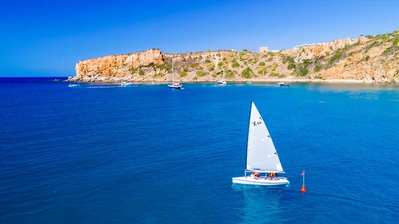 Первая береговая линия, собственный пляж с вулканическим песком. К нему ведут лифты в скале. Прокат пляжных полотенец.