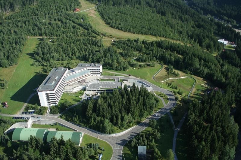 Отель расположен на лыжном склоне, в непосредственной близости к зоне катания Medvedin, всего в10 минутах ходьбы до центра курорта. Рядом с отелем имеется небольшой спуск с подъемником для начинающих, которым дети до 5,99 лет могут пользоваться бесплатно
