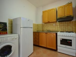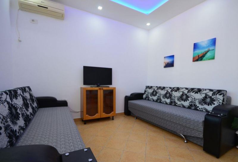 Apartment 1+1 (в гостиной: два дивана-кровать, телевизор, стол со стульями, кухня с кухонными принадлежностями, стиральная машинка, холодильник. В спальной комнате: одна двухспальная кровать и одна полуторная, шкаф)