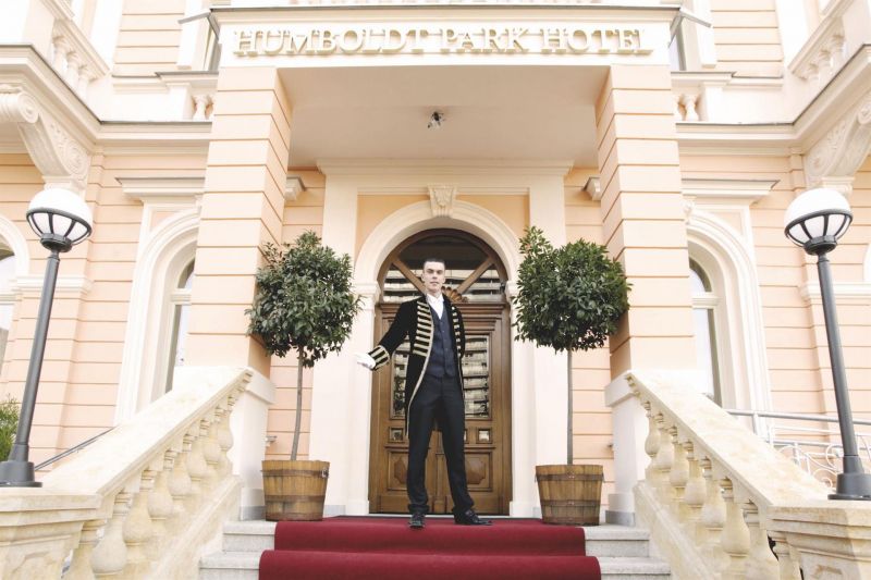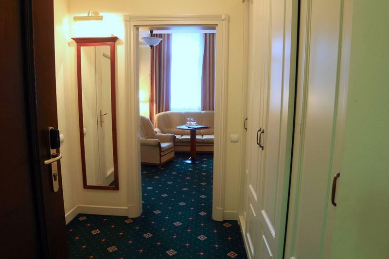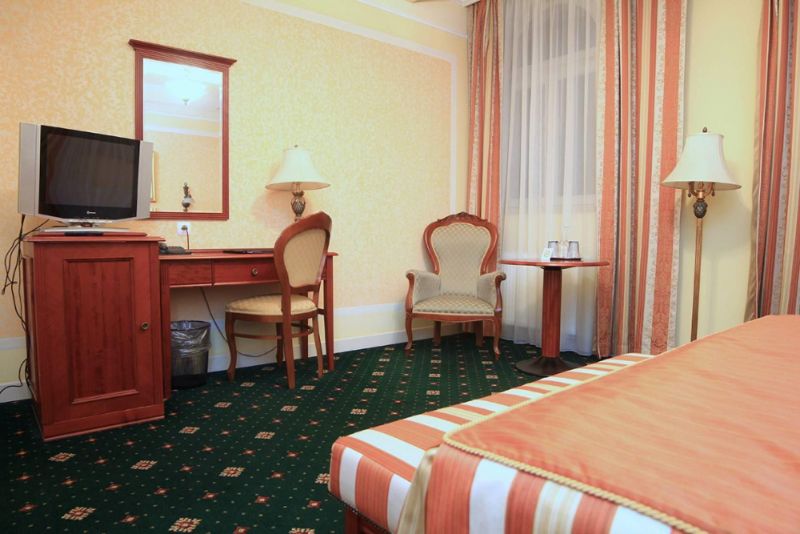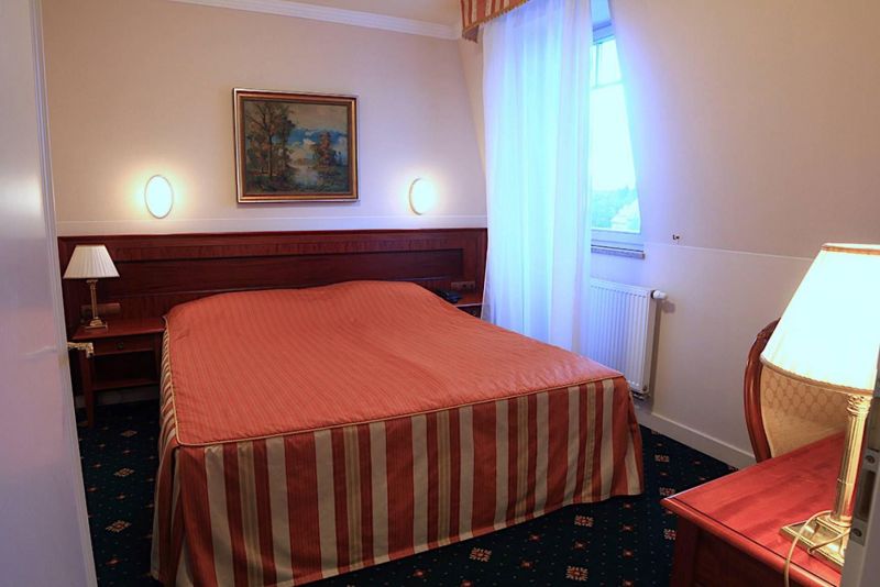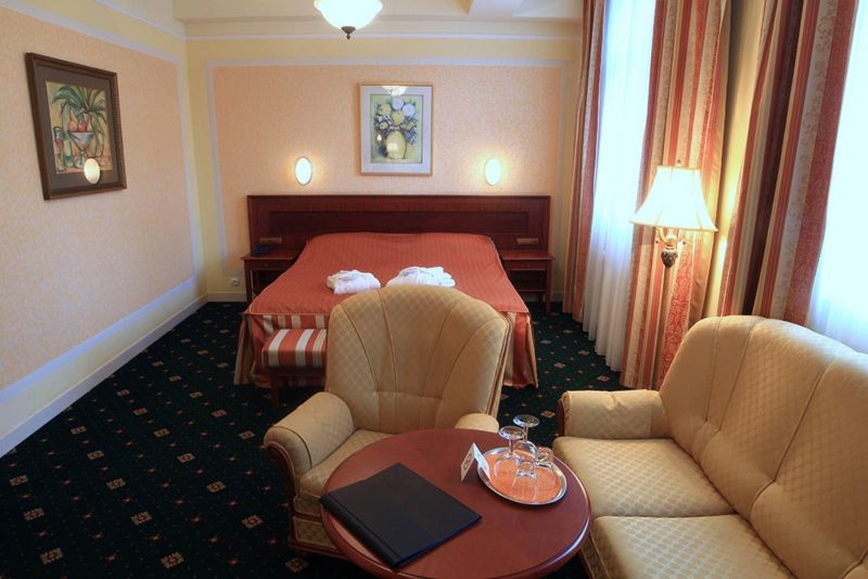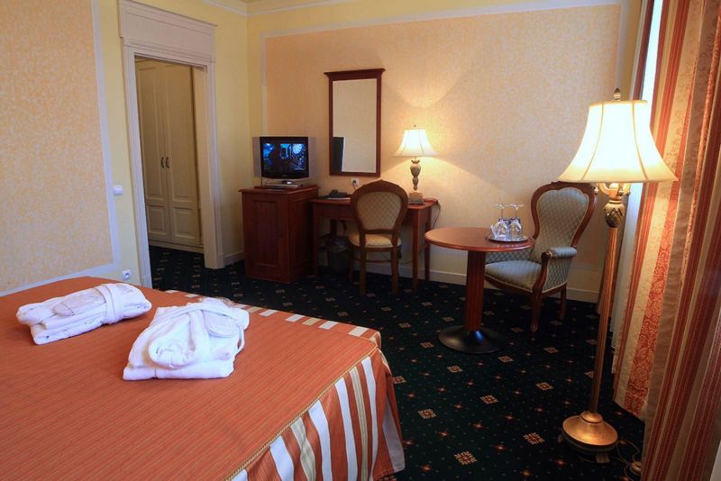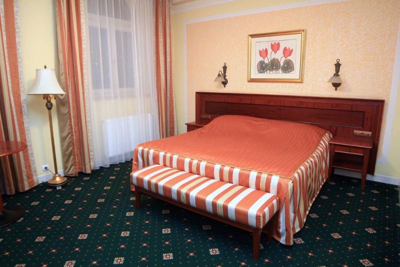 В самом центре курортной зоны города Карловы Вары, недалеко от источников, напротив отеля Thermal.