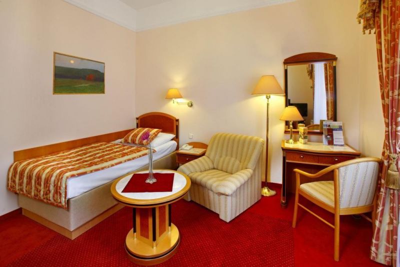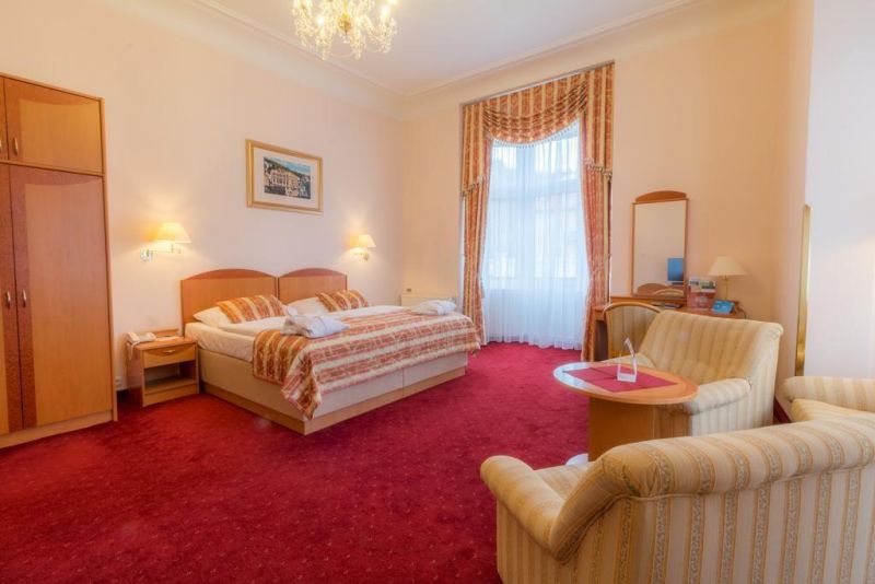 В курортном городе Мариански Лазне, на площади Гете вблизи от курортной колоннады, где отдыхающие принимают питьевой курс.