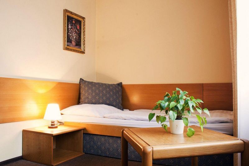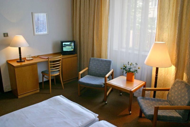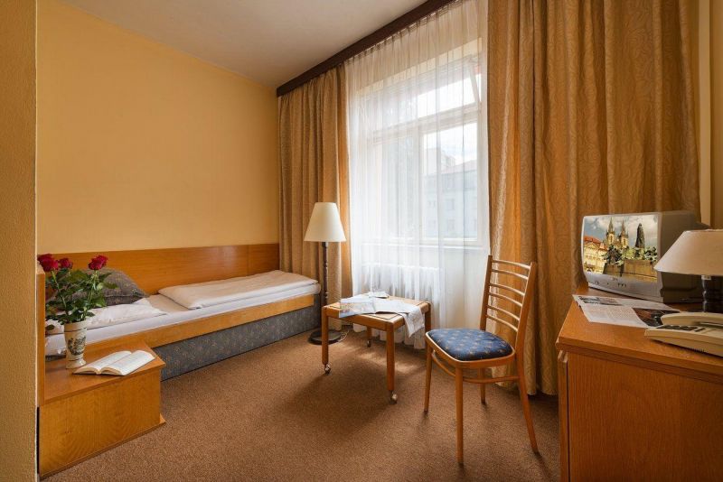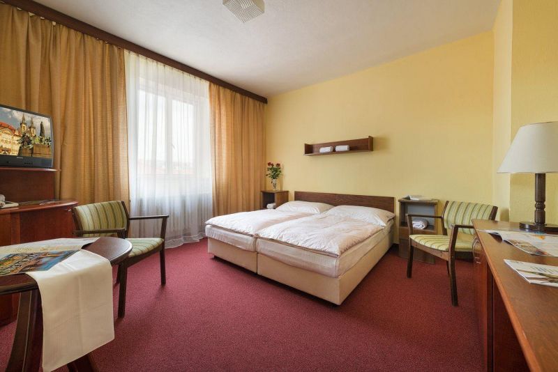 Отель очень понравился, полностью соответствует 3*. Находится в тихом районе рядом с автобусной остановкой и продуктовым магазином, который открывается если не ошибаюсь - около 5 утра. На а136-ом автобусе ехать до метро - 10 минут (автобусы в Праге ходят по расписанию, на каждой остановке можно посмотреть время прибытия по дням недели). На ресепшене круглосуточно находится администратор. Номер у нас был чистый, с большой кроватью, прикроватным столиком и лампой, тумбой для багажа, столиком с телефоном и двумя креслами и тумбочкой, на которой стоял небольшой телевизор (кстати, Первый канал показывал, остальные были чешские каналы). В прихожей стоял шкаф для одежды и небольшая тумбочка для вещей. В туалете на стене висел фен (хоть и старенький, но рабочий). Иногда вечером из крана с горячей водой шла чуть тёплая вода (нужно было подождать и слить воду, но когда-то по-прежнему шла чуть теплая вода). Уборщица приходила практически каждый день (подкладывала туалетную бумагу и заправляла кровать). В номере мебель была хоть и староватая, но всё было по делу и всё нужное (а что Вы хотите, 3*). Полотенца были. Шведский стол был очень хорошим! Чего там только не было!!!