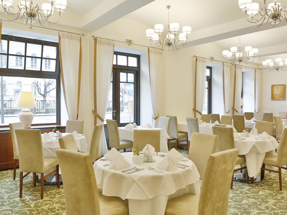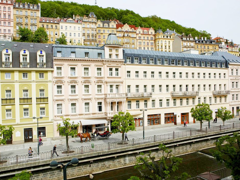 Расположен в самом центре курорта Карловы Вары напротив Главной колоннады с источниками.