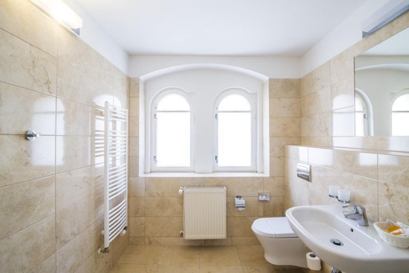 Санаторий расположен в самом центре Карловых Вар, в непосредственной близости от Мельничной колоннады, около реки Тепла, недалеко от минеральных источников. Здание построено в 1866 году в стиле английской неоготики, реконструкция произведена в 2014 году.