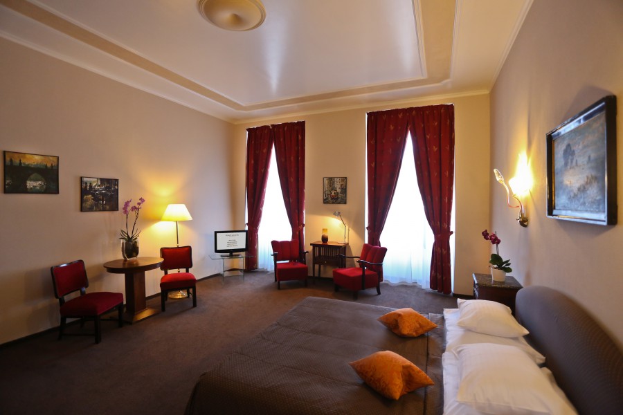 со старинной мебелью в стиле пражского модерна. Номера различны по площади и форме даже внутри одной категории, что обусловлено архитектурой здания