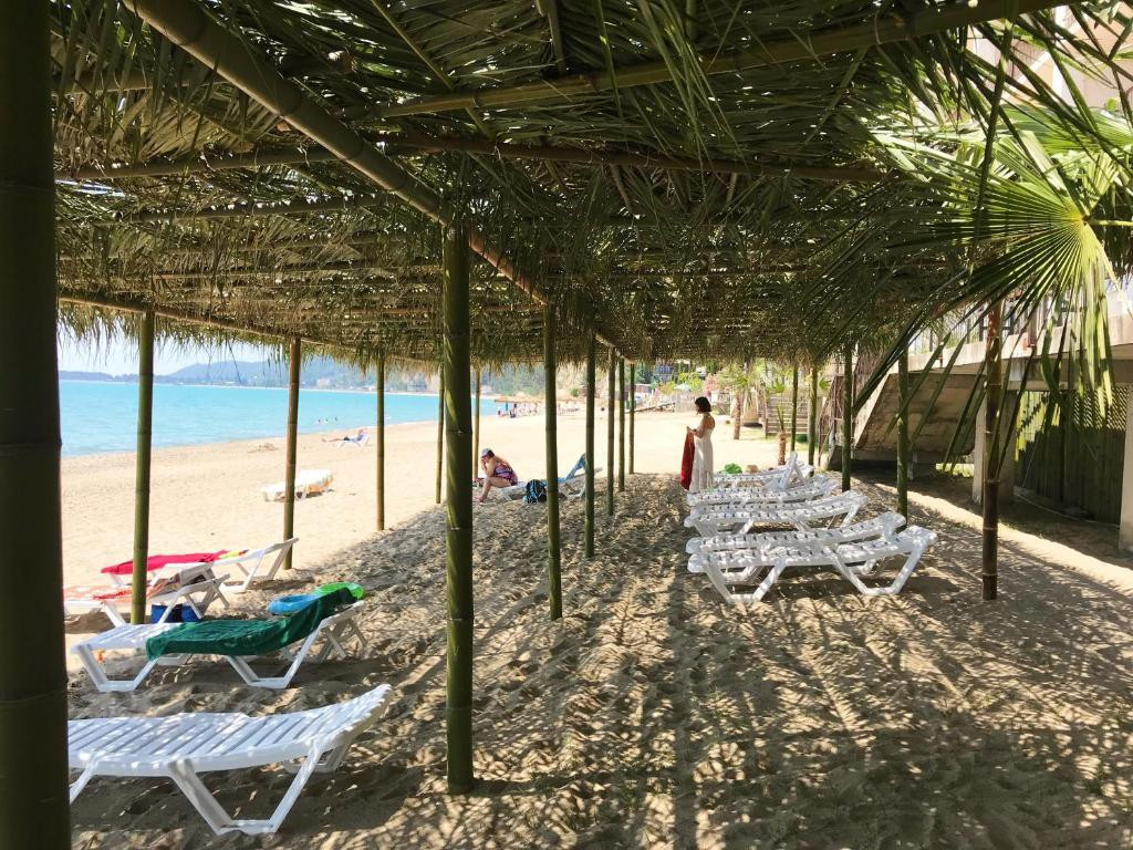 Нам всё понравилось. Ехать далековато конечно. Номера маленькие, но функциональные. В тех, что с видом на гору нет жары днем. Завтраки и ужины разнообразные и вкусные, повара молодцы, спасибо большое, привезла домой 3 кг за 10 дней. Шашлык в кафе рядом с отелем просто дрянь, один раз поели, больше не ходили. Пляж хороший, вход удобный, море иногда грязновато, то с песком, то листья всякие, то медузовая каша, шезлонгов хватает. Цены на фрукты завышены. Клубника при нас 450 р., черешня 400 р. Есть магазинчик прям в отеле, вино 350 р, пиво 100 р, мороженое 100р, больше ничего нет. Метрах в 200 от отеля магазин, там разнообразие товаров. Можно и на ужин что-то купить покушать. Обстановка в отеле дружелюбная, одни наши отдыхают. Персонал просто супер, особенно ресепшн. Муж был после операции по замене тазобедренного сустава, заранее написала им в ВК, ответили, что на 1 этажах нет номеров с видом на гору и любезно предоставили номер на 2 этаже, чтобы не тяжело было подниматься ему. Вернемся еще обязательно. Спасибо за отдых.