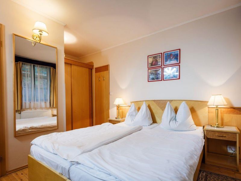 На курортной территории и в самом центре культурных и общественных событий. На левом берегу реки Тепла в 100 м от колоннады с горячими источниками, городского театра и в самом центре места для пешеходных прогулок курортной части города.