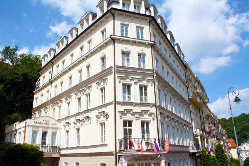 На одной из центральных улиц курорта Карловы Вары, в 150 м от питьевых термальных минеральных источников.