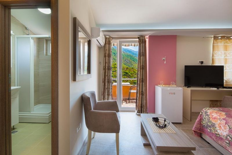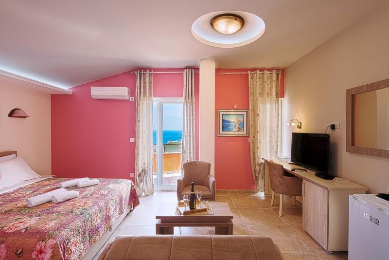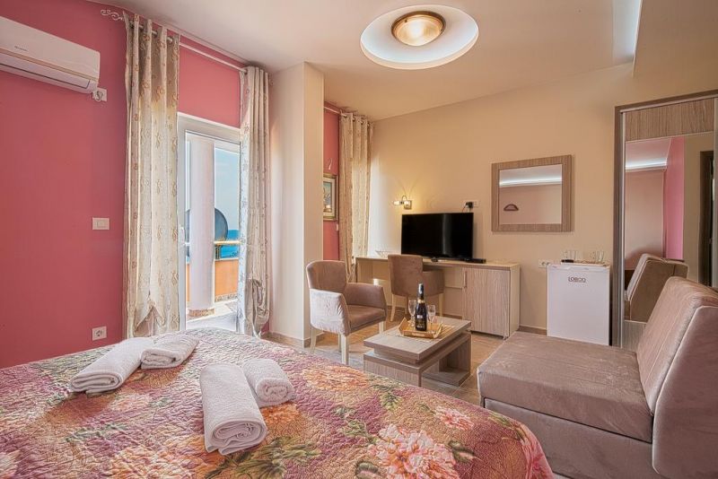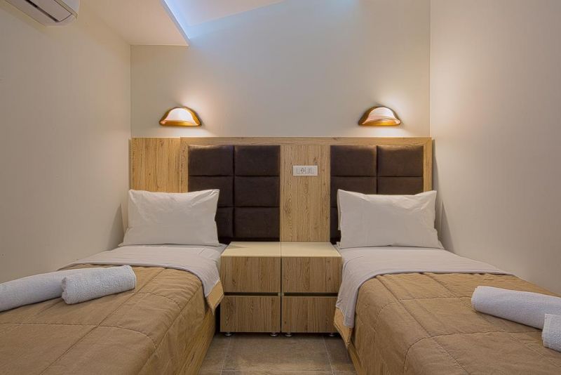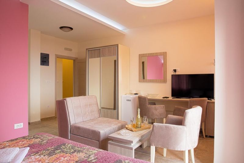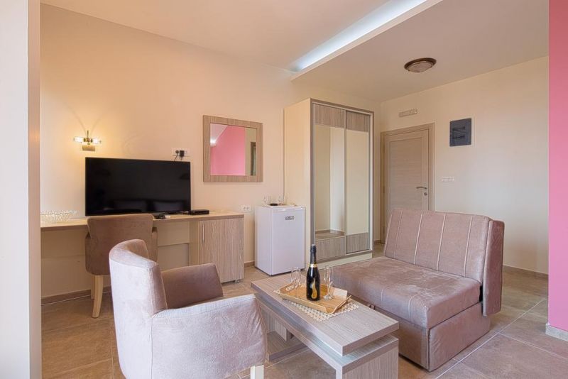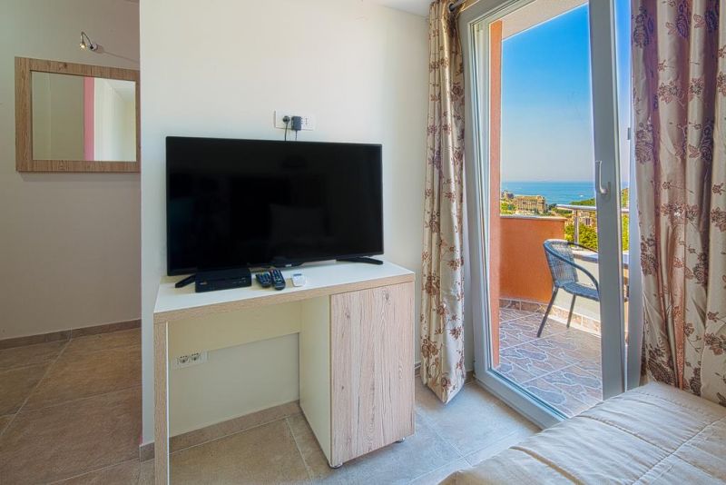Студио 02+1 (economy): фр.кровать+доп. кровать, ванная комната, кухонный блок, кондиционер, телевизор, терраса перед номером