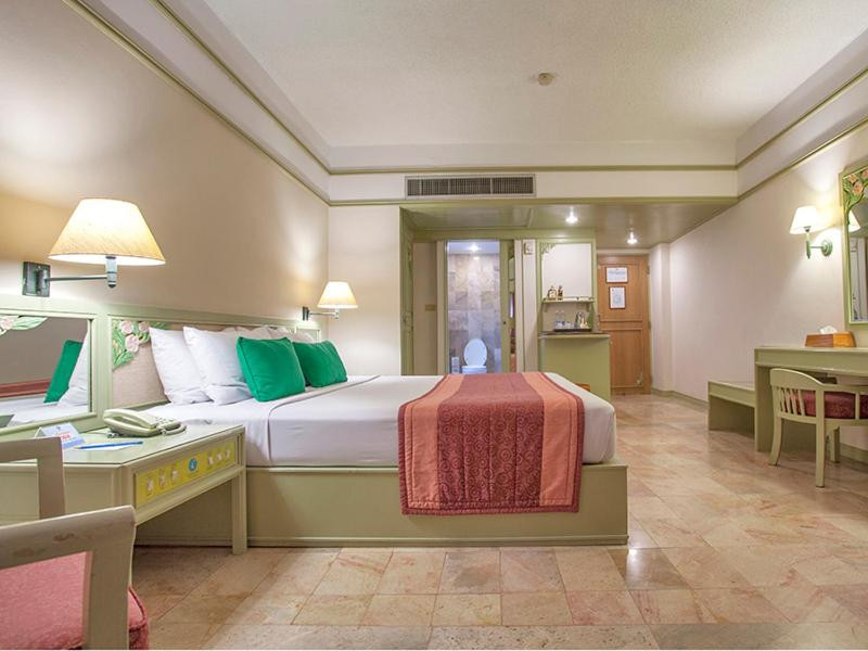 Отель находится на берегу моря, в 5 км от центра Паттайи. К размещению уютные номера разной категории со всем необходимым для проживания. Из них также открывается потрясающий вид на синее море или тропические вершины холмов. Гости могут сыграть в теннис или сквош на предоставленных кортах или потренировавшись в фитнес-центре. На территории есть открытый бассейн. Можно также посетить сауну и воспользоваться услугами массажа. Работают 2 ресторана: один предлагает питание в течение всего дня, а прибрежный ресторан предлагает разнообразные сорта свежего разливного пива, закуски и блюда из морепродуктов на гриле. Отель в 10 минутах езды от центра Паттайи с его широким выбором ночных клубов, магазинов, ресторанов, баров и закусочных. ВНИМАНИЕ! При заселении взимается депозит.