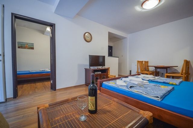 5 Apartment (от 30m2): двухкомнатный номер, спальня с французской кроватью и гостиная с мягкой мебелью, где возможно поставить еще две дополнительные кровати, мини-кухня, отдельная терраса, некоторые номера с видом на море. Максимально допустимое размещение – 5 человек.