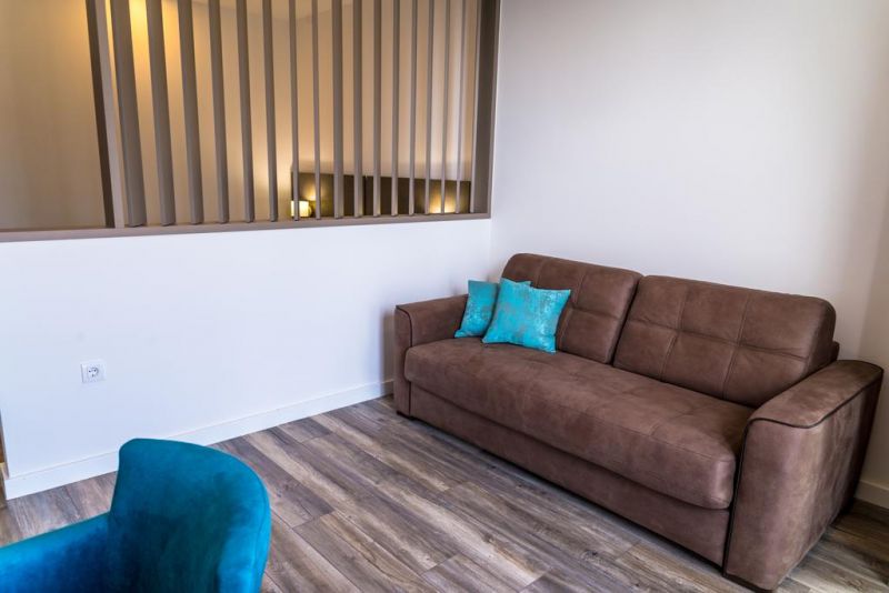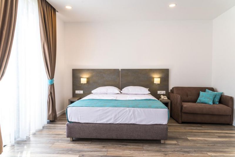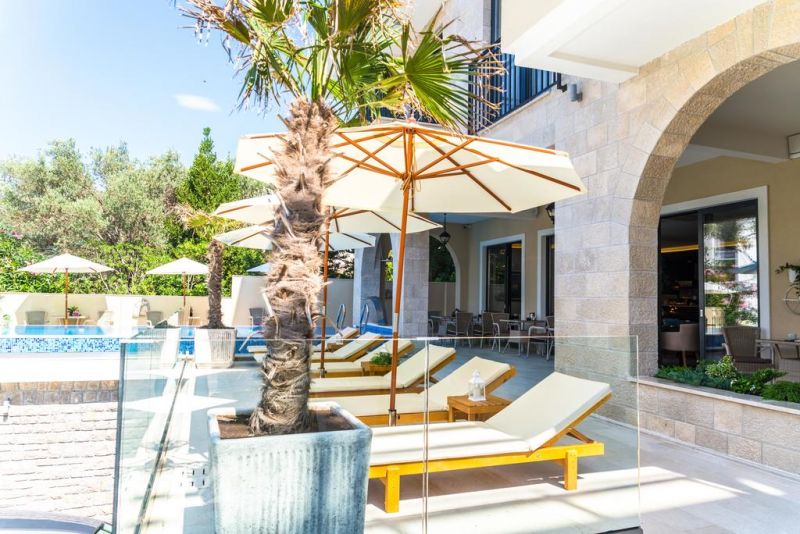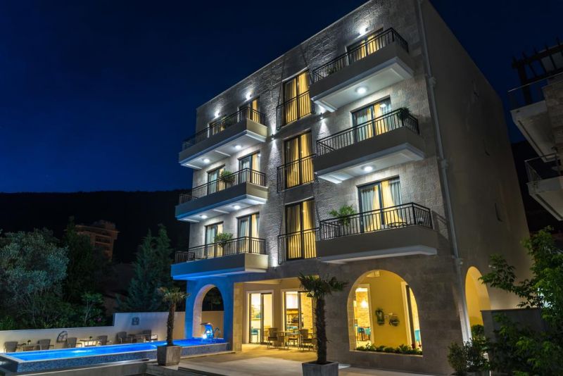 Открытый в прошлом году мини-отель на 20 номеров находится всего в 100 м от моря и в 5 минутах ходьбы от центра городка. Рядом с ним находится живописная оливковая роща, а из окон открывается вид на море и горы.