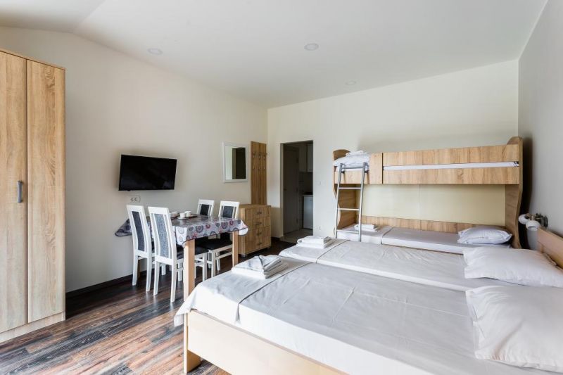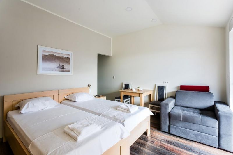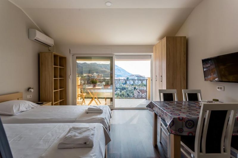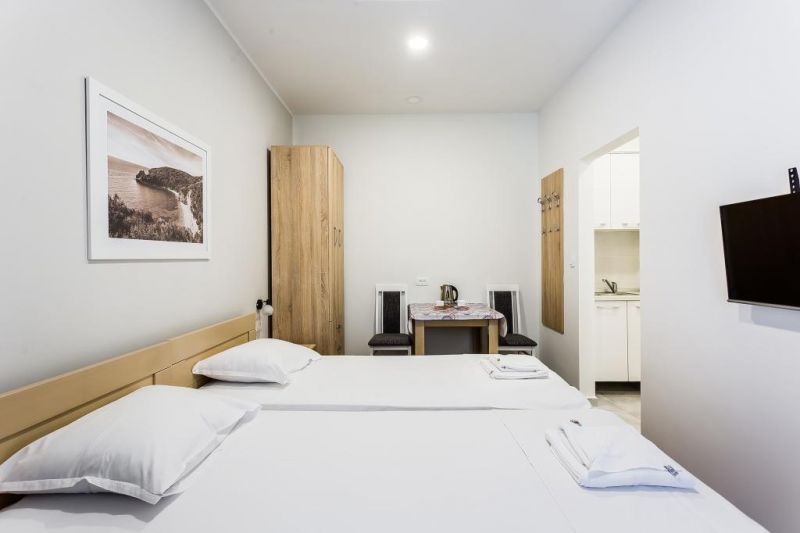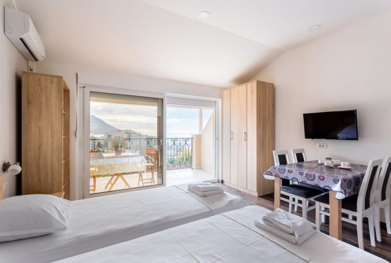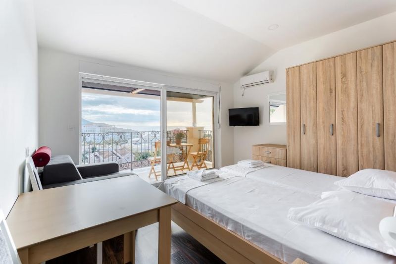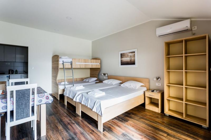 Studio 03 extra ( ок. 24 кв.м ) - номера с французской кроватью и двухъярусной кроватью, душ/туалет, балкон с видом на море. Максимально допустимое размещение – 3 человека + 1 ребенок до 12 лет.