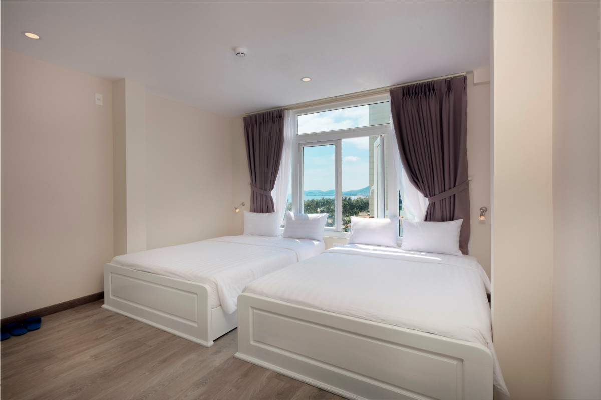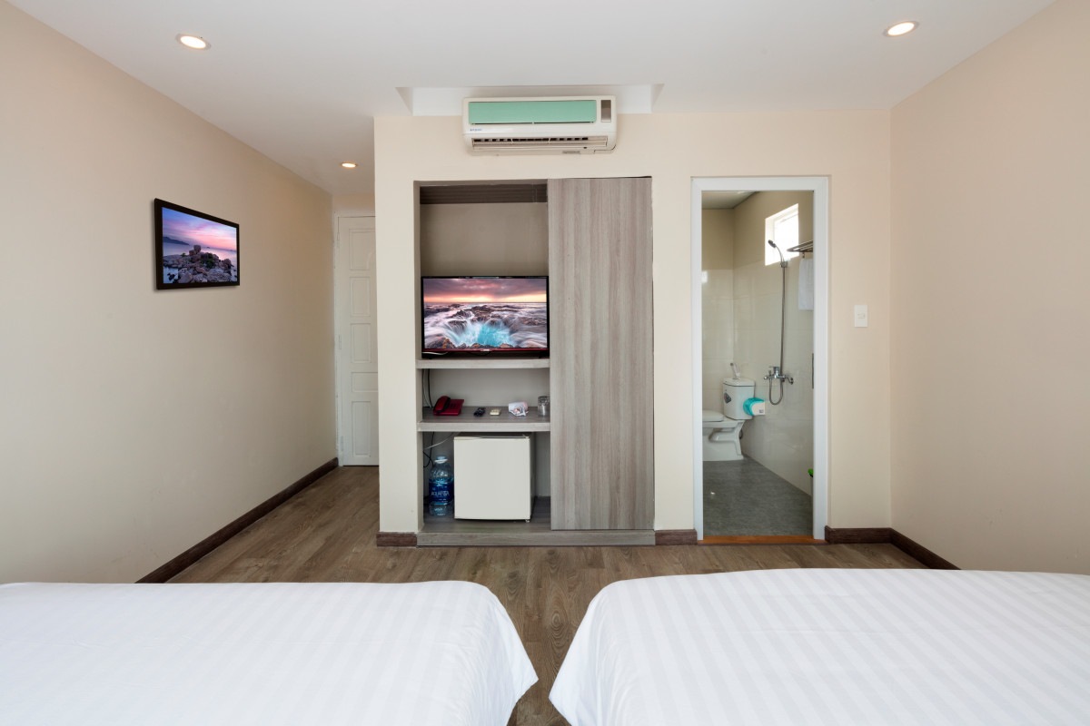 Отдыхали в марте 2019 года, выбирали специально отель без питания, во Вьетнаме первый раз... Отель скромный, но чистый... Заселение в 14.00, нам ключи вручили в 13.00 (без всяких доплат), жили в суперьоре с окном. В номере две огромные кровати, мини-холодильник с водой (внимание!!! вода не бесплатно) кондиционер (достаточно тихий), убирали номер через день, полотенца меняли при уборке, постель не меняли ни разу за 11 ночей, мыльные принадлежности пополнялись по мере расходования... Телевизор с одним каналом, маленький шкаф для двоих взрослых явно мало, тумбочек нет... Но это ДВОЙКА... Люди, будьте проще - этот отель очень приличный для своих 2**... Расположен в 100-150 м от пляжа, и практически в центре Европейского квартала в тихом переулке, что немаловажно... Кафе работают с 5 утра, так что вопрос питания вообще не стоял - еды много и разной на любой вкус и кошелек. По русски или говорят или понимают практически везде - у нас проблем не возникало... Если еще раз поедем во Вьетнам, выберем этот отель... Нам понравилось!