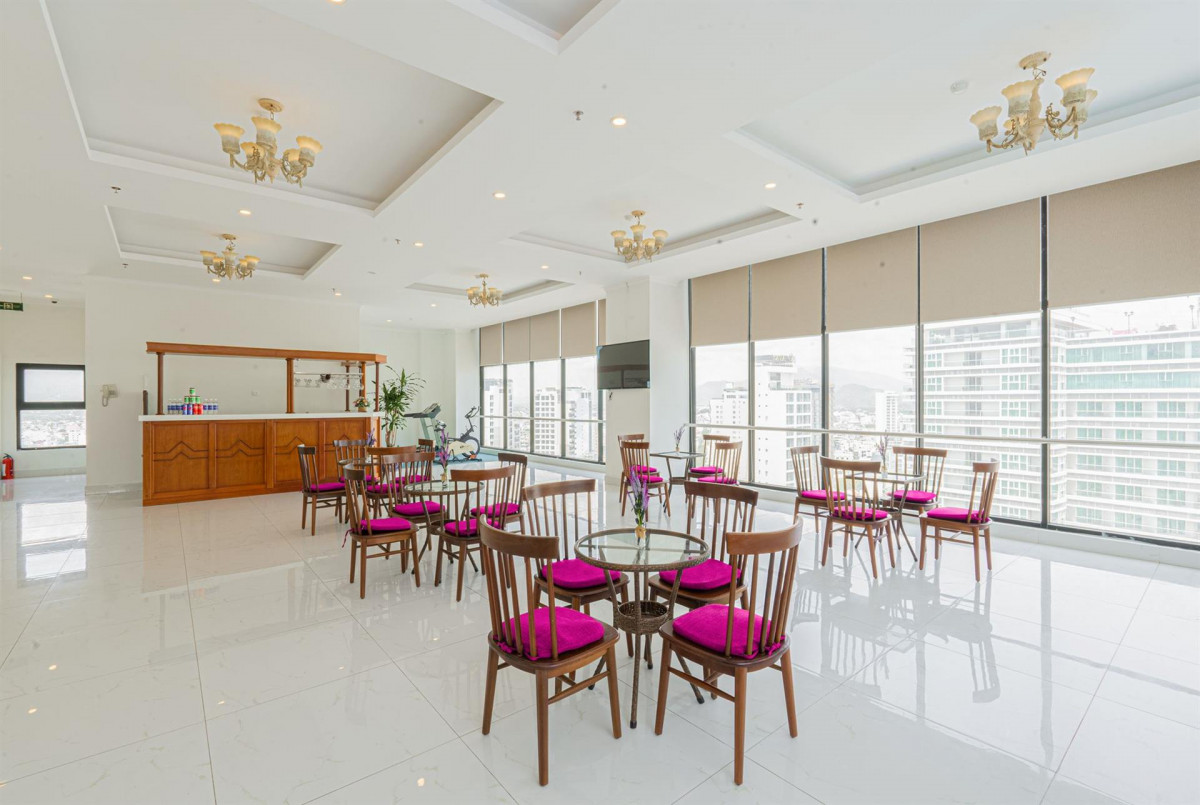 Только вернулись из Нячанга ,отель неплохой, но никак не 4звезды,твердая 3-ка, Согласна со всеми предыдущими отзывами,но есть что добавить : на входе никто не встречает и не помогает с багажом,а тащить чемоданы в верх по ступеням ещё то удовольствие,уборка как и везде в азии- спустя рукова,благо полотенца и мыльно рыльные меняют и пополняют каждый день, за 9 дней ни разу не видела чтобы пылесосили ковралан в коридоре,пляжные полотенца выдают под роспись в 6 утра и в 5 вечера, звукоизоляции никакой при закрытых окнах шум с улицы постоянно слышен, ооочень жёсткие матрасы,по поводу холодильника-скорее это винный шкаф для охлаждения и такие по всему отелю, курить на балконе нельзя-штраф 1000 000 донгов,в лобби есть место для курения, Бассейн маленький на крыше на 20 этаже размером 3 х4 глубина 1,40 проржавевший,но чистый, всего три лежака для отдыха ,насчёт живности -тараканов и клопов не видела и не слышала чтобы кто-то жаловался, но комары и мелкие мошки которые кусаются почище комаров в номерах есть ! Завтраки достойные, голодными не останетесь , за все дни пребывания в отеле ни одно блюдо не повторилось, замечательная локация и расположение, рядом много магазинов, кафе, прачечная ,массажные салоны, до моря 5 минут быстрым шагом, магазин Сапфир через дорогу, ночной рынок в 300 метрах на лево от отеля, Персонал доброжелательный и приветливый быстро решали все проблемы и реагировали на просьбы, Отель очень подуставший, но к посещению рекомендую, всё-таки плюсов больше чем минусов,