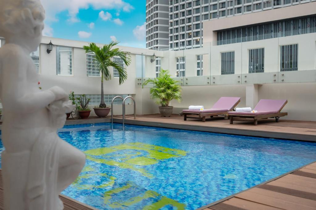 Отдыхала в отеле в феврале 2020 года. Отель и номера чистые, ухоженные. Мой одноместный номер был просто супер! Завтраки нормальные, фруктов много, кофе вьетнамский очень вкусный))) Бассейн на крыше очень симпатичный и чистый. Лежаки есть) Очень советую этот отель!