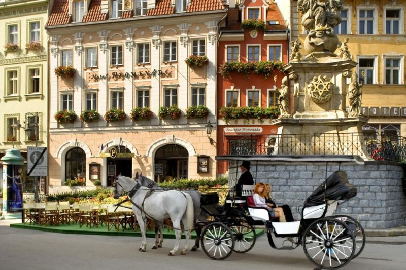 Отель "Променада" 4**** находится в самом центре Карловых Вар, напротив Гейзерной колоннады, 1-го источника.