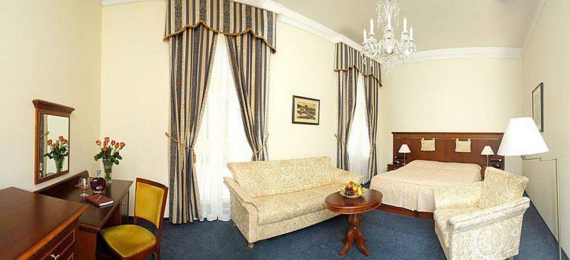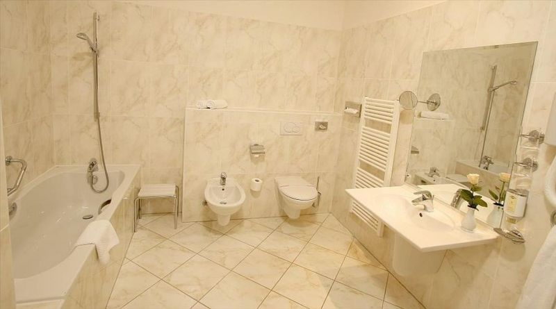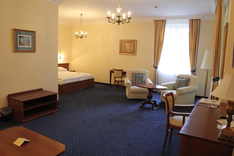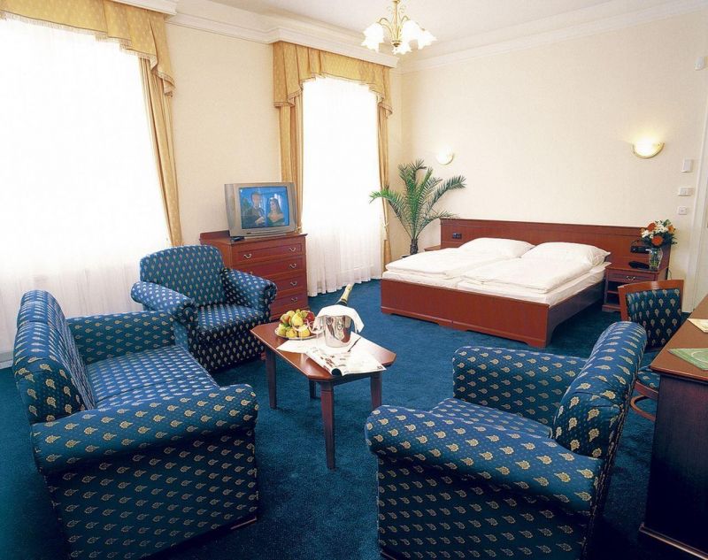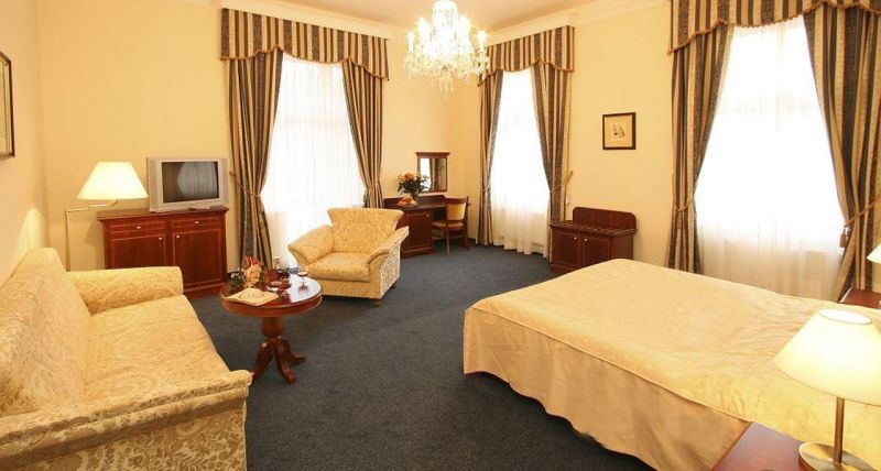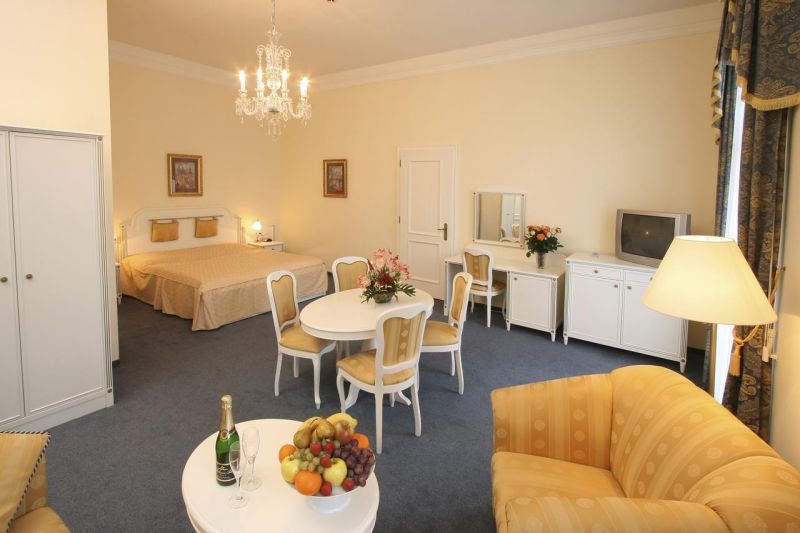 В тихой части Карловых Вар на берегу реки Теплы, окружен английским парком. Расстояние от аэропорта V?clav Havel Airport - 119 км.