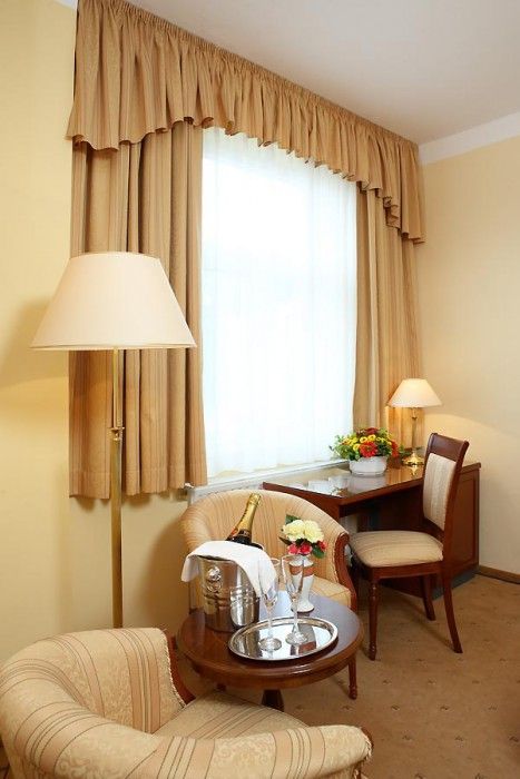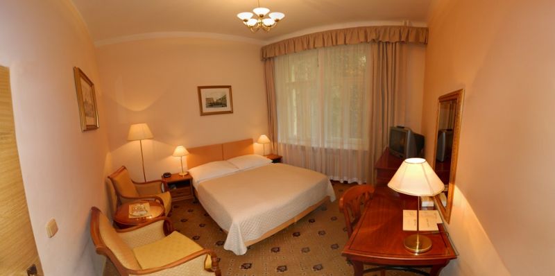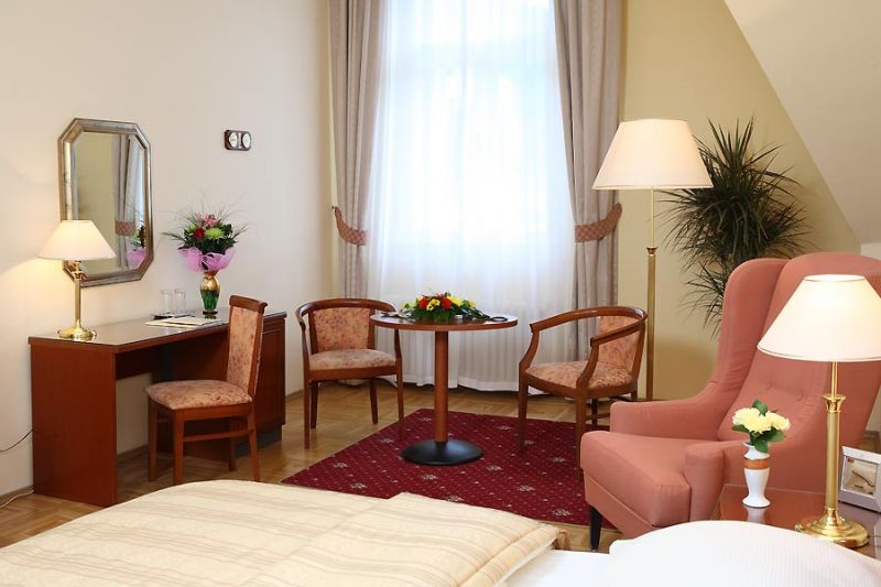 Отель расположен в самом центре Карловых Вар, напротив Гейзеровой колоннады и лечебницы «Замковые Лазне». С 1867 года на этом месте находился пансионат Annaberg, затем 2 здания были снесены и в 1898-99 годах на их месте был построен новый бальнеологический отель Wurttenberger Hof. Позднее отель был переименован в Puskin. В 2001 и 2002 годах ресторан на первом этаже и весь номерной фонд гостиницы были реконструированы. До Праги 123 км (около 2-х часов езды), до аэропорта Праги 114 км (около 1,5 часов езды), до аэропорта Карловых Вар 5,2 км (около 9 минут езды).