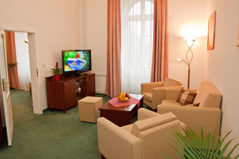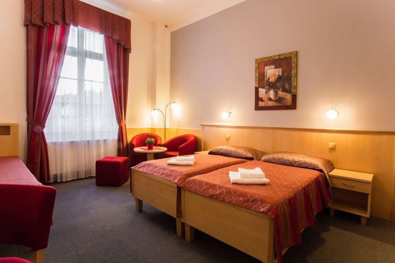В центре курортной зоны города Карловы Вары, в 3-х минутах ходьбы от Мельничной колоннады, рядом с Садовой колоннадой.