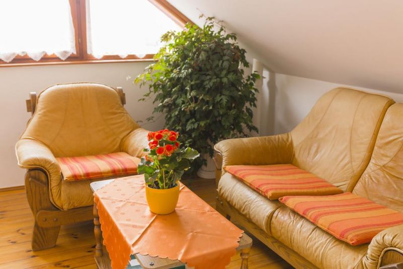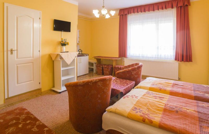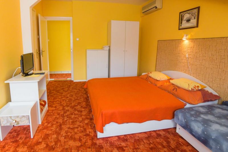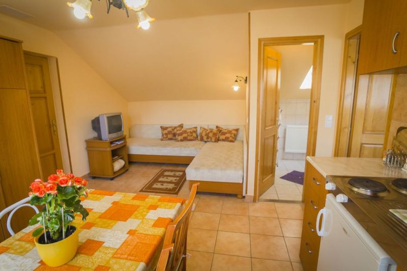 Studio Apartment (расположены на 2 и 3 эт., двуспальная кровать, шкаф, мини-кухня с холодильником и другим электрическим оборудованием, небольшой обеденный стол. На 3 этаже апартаменты-студио с кондиционером. Они оснащены так же, как апартаменты на 2 эт. К студиям примыкают отдельная общая кухня (с обеденным столом, шкафами, холодильником и газовой плитой) и крытая терраса с цветами. Макс. 4 чел.)