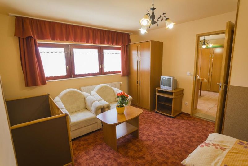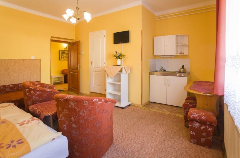 Family Apartment (40 кв.м, находятся на верхнем этаже, гостиная с кухней и 2 кроватями для детей, спальня, кондиционер, халаты, 2 телевизора, макс. 4 чел.)