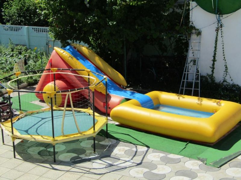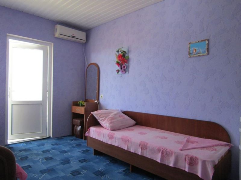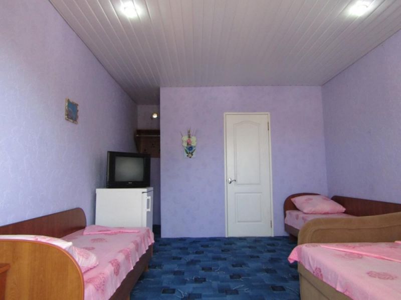 Стандарт 1-комнатный 3-местный (без кондиционера), 16-18 кв. м. Одна односпальная и двуспальная кровати, тумбочки, журнальный столик, полочки, зеркало, постельное белье, у каждого номера столик и стулья (или табуреты) для отдыха, номера расположены на первом и втором этажах.Санузел (душ, туалет, умывальник). Вид во двор