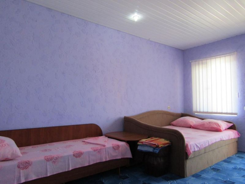 Стандарт 1-комнатный 3-местный, 16-18 кв. м. Одна односпальная и двуспальная кровати, тумбочки, пуфики, журнальный столик, полочки, зеркало, постельное белье, у каждого номера столик и стулья (или табуреты) для отдыха, номера расположены на втором этаже. В номере: кондиционер, телевизор, холодильник. Санузел (душ, туалет, умывальник). Вид во двор. Доп. место - 1-спальная кровать, или еврораскладушка