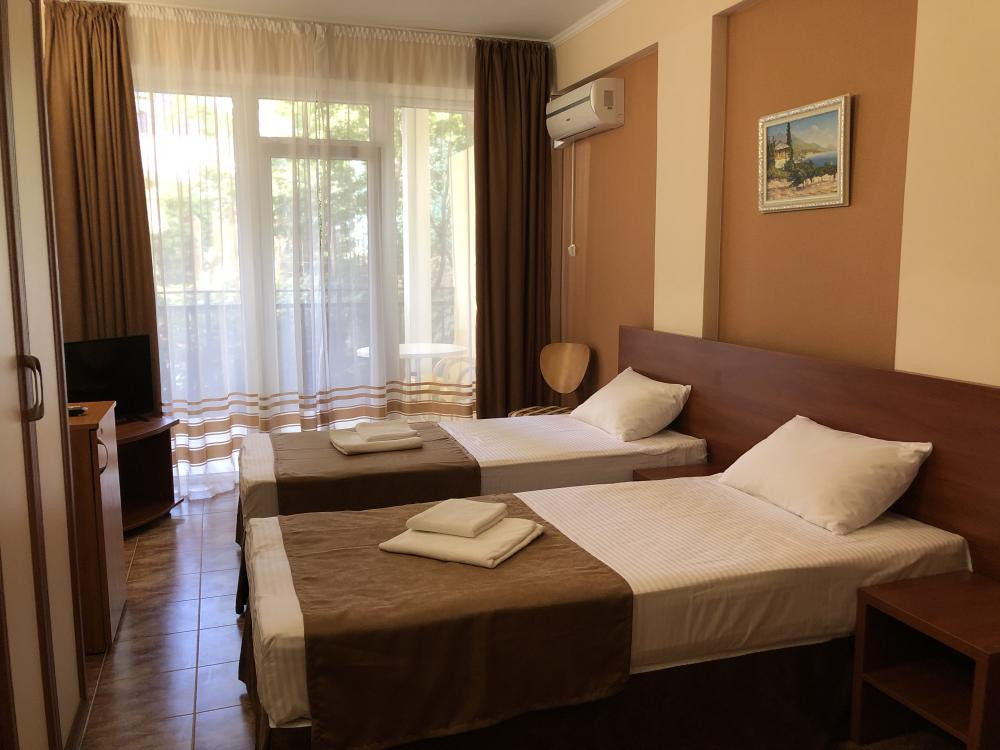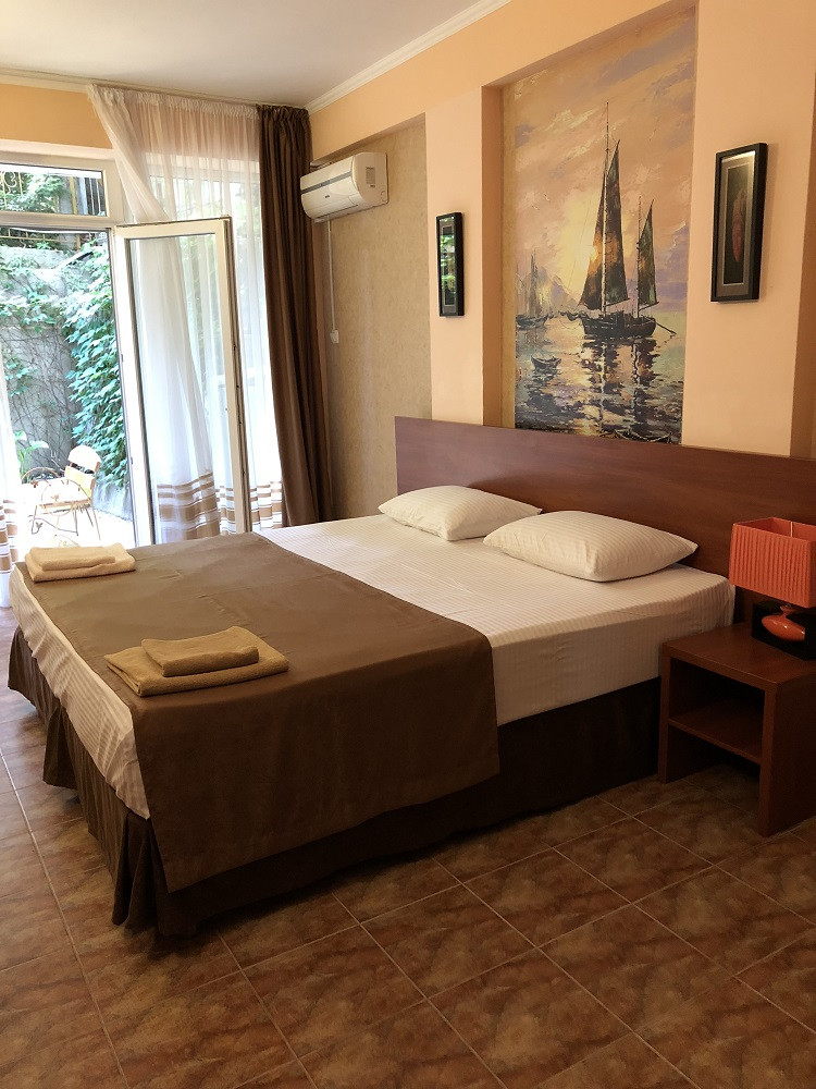 2-местн. Стандарт с балконом — 20 кв. м, двуспальная кровать или односпальные кровати, вид на море или внутр. дворик, доп. место — кресло-кровать, балкон есть
