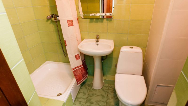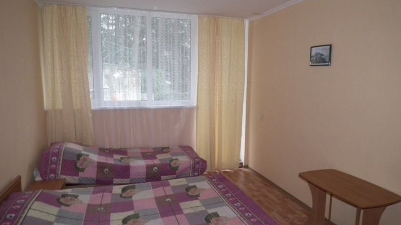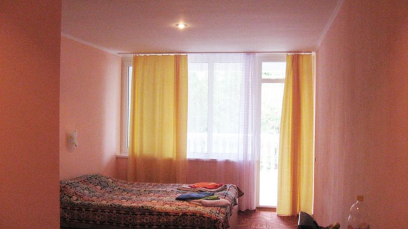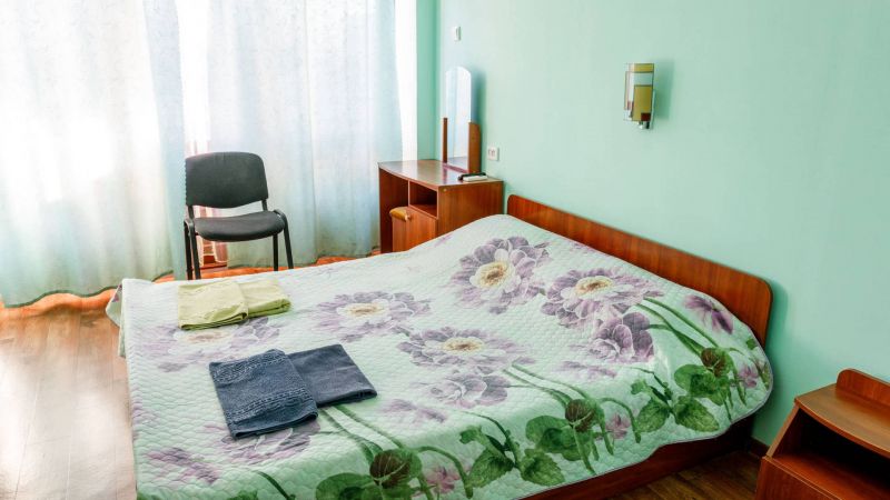 - 4-местный (1-комнатный со всеми удобствами, в номере большая двуспальная кровать и две односпальные, есть большой раскладной диван. Санузел совмещенный, ванна, холодная и горячая вода постоянно)