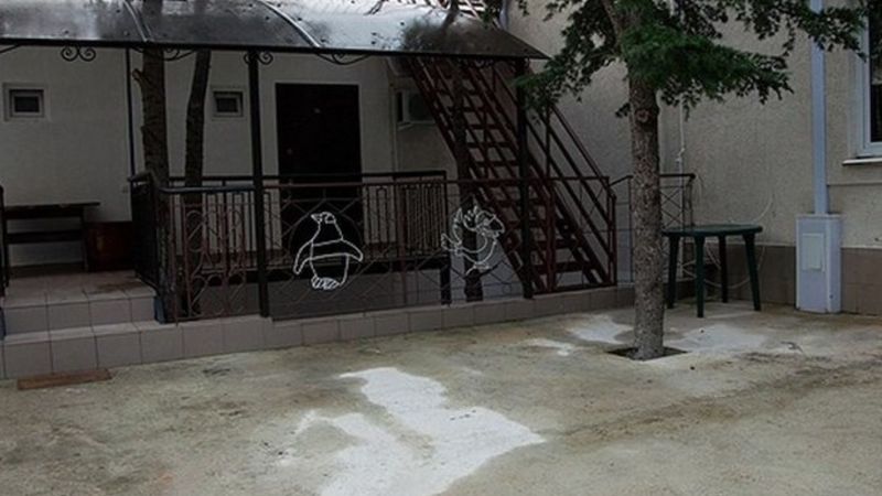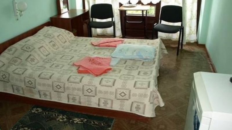 - на первом этаже: четыре 2-местных 1-комнатных номера со всеми удобствами (телевизор, холодильник, кондиционер). Вход в номера с площадки на улице. В номере большая двуспальная кровать, односпальная кровать (как дополнительное место), совмещенный санузел, ванна, биде.