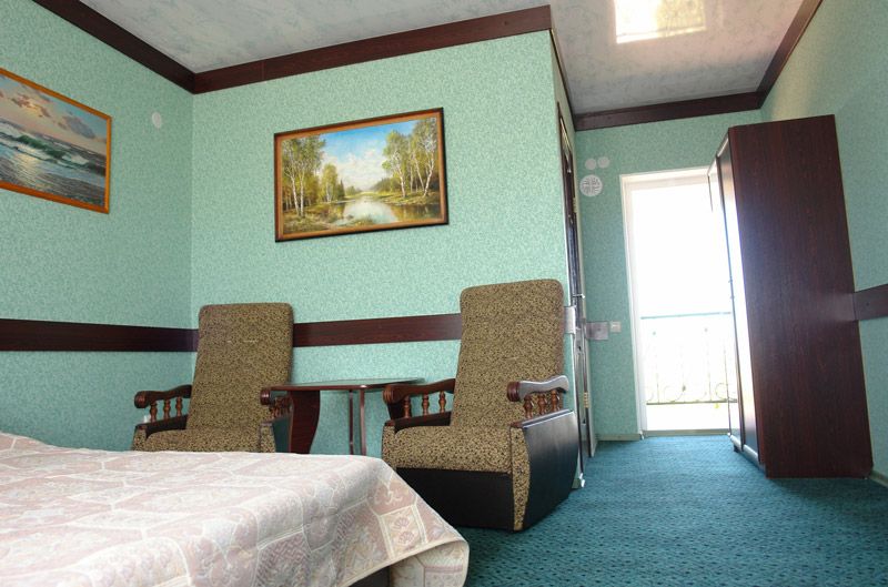 2-местный 1-комнатный номер в корпусе, 2 этаж. Площадь номера 24 м.кв. двуспальная кровать, шкаф, журнальный столик, два кресла, холодильник, телевизор. Кондиционер. В номере все удобства (душевая кабина, туалет, умывальник)