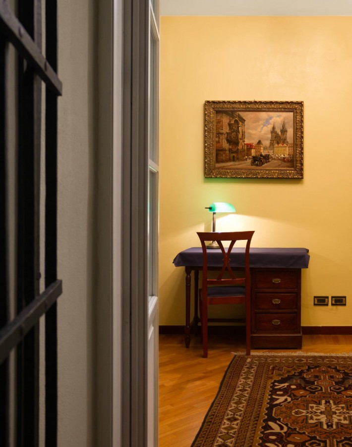 Дом, называемый «У наисвятейшей Троицы», построенный в стиле Возрождения, возник после перестройки старого средневекового здания; во времена барокко был расширен и прошел еще несколько перестроек до 19 века. В течение длительного периода с 17 века здание называли «У ювелира», что было связано с профессией его владельца Яна Криштофа Майера. Благодаря его значению в рамках резервации пражских памятников старины это здание было включено под защиту ЮНЕСКО. Последняя комплексная реконструкция проводилась в 1994 г. и была направлена на сохранение архитектурных аспектов с учетом новых требований к жилью, вызванные преобразованием здания в гостиницу