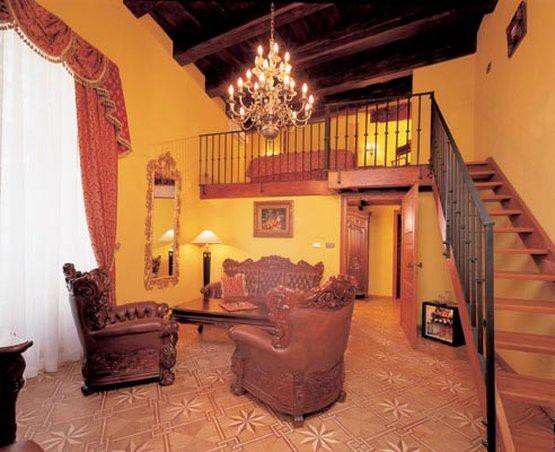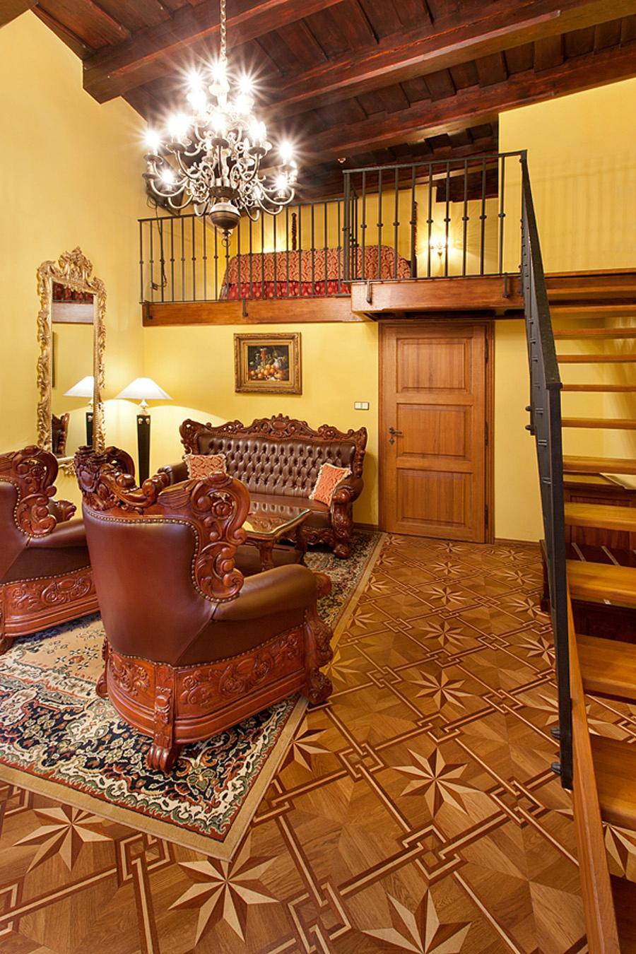 Junior suite (прихожая, гостиная с высоким потолком и спальня в бельэтаже с двухспальной кроватью)