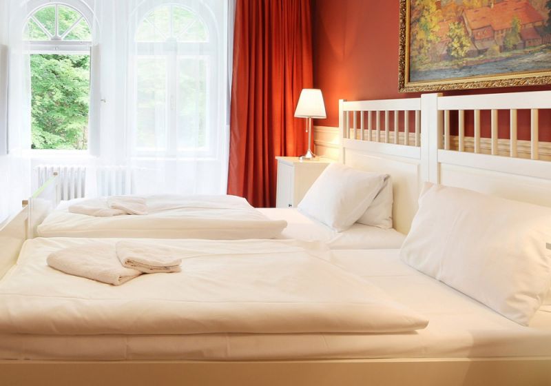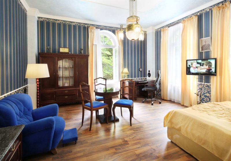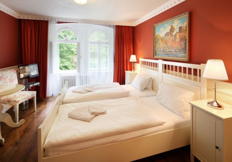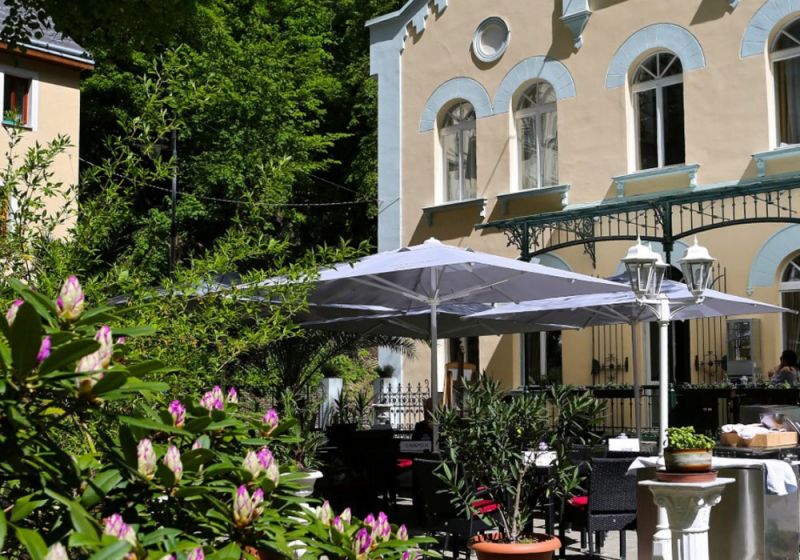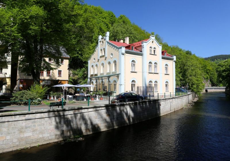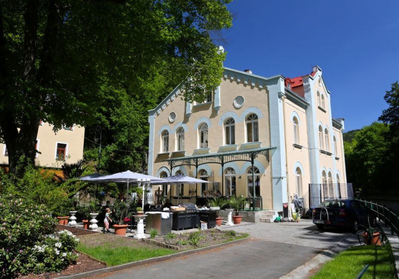 Семейный отель, из окон которого открывается вид на отели "Карлсбад Плаза" и "Грандотель Пупп". Отель «Вилла Базилея» возник в результате перестройки летнего дома графини фон Шаумбург Липе. В живописной долине реки Тепла по ее желанию в девятнадцатом столетии была построена вилла в неороманском стиле. При перестройке «Виллы Базилея» в семейный отель удалось сохранить прежнюю планировку дворянского имения.