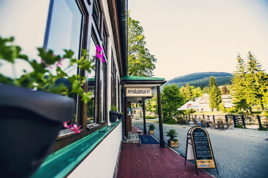 Ресторан отеля, вместимостью до 99 мест, предлагает изысканную чешскую кухню.