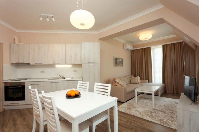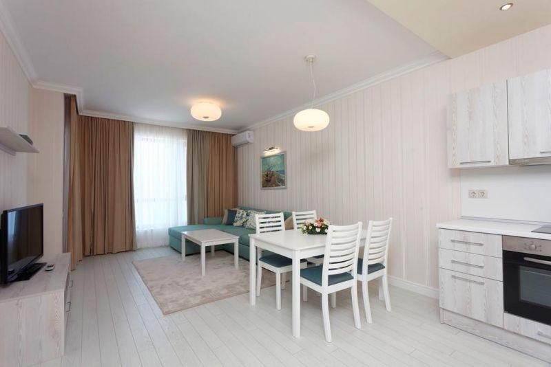 Апарткомплекс находится в районе Чайка, на берегу моря, недалеко от курортного комплекса Ривьера и популярного пляжа Кабакум.