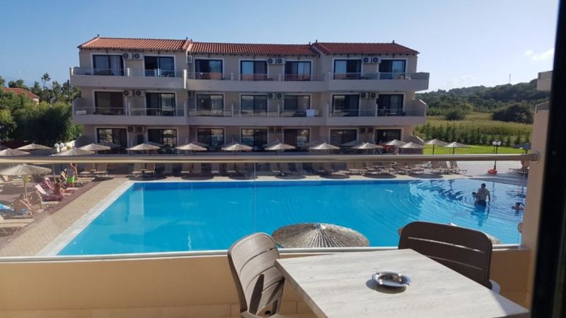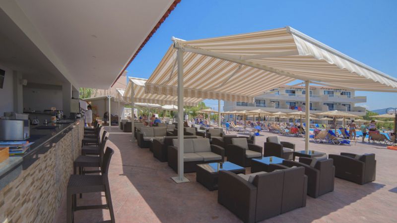 бар у бассейна 10:00-24:00 напитки местного производства в неограниченном количестве: пиво, вино, узо, метакса, прохладительные напитки, чай, кофе, какао, соки, вода. 13:00-24:00 джин, водка, ром, кумкват, шнапс.