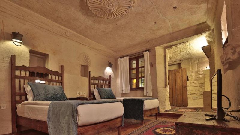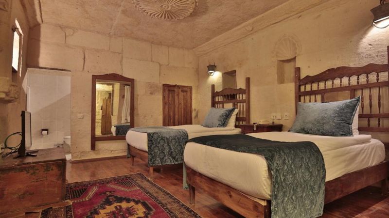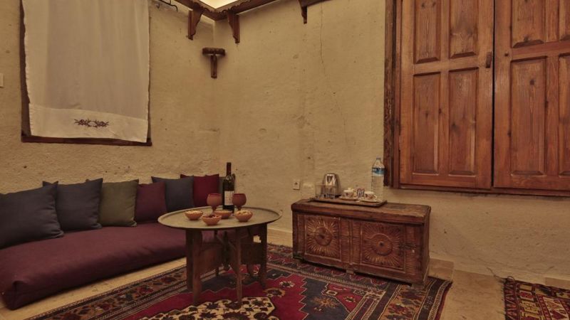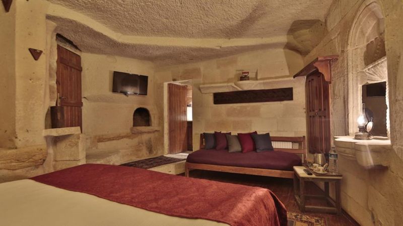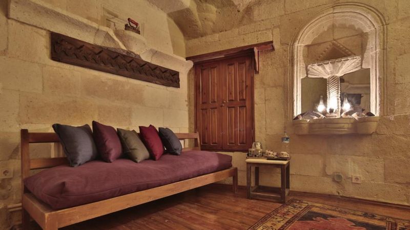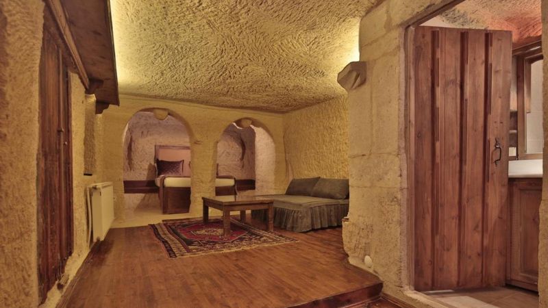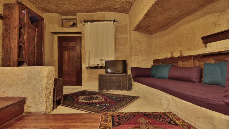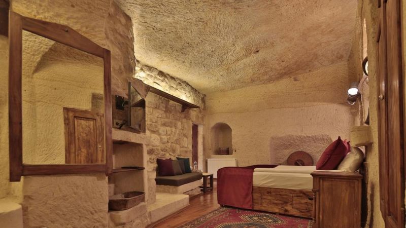 Гостям отеля предлагается размещение в номерах и люксах «Пещера», с террасы которых открывается вид на окружающие долины и деревни. Номера и люксы отеля с каменными стенами и деревянным полом оформлены в традиционном стиле. В числе удобств турецкие ковры и удобные подушки. В распоряжении гостей собственная ванная комната с душем, туалетом и феном. В ресторане подают уникальные блюда местной кухни. Стол для гостей могут накрыть в помещении или на свежем воздухе на террасе с видом на окрестности.