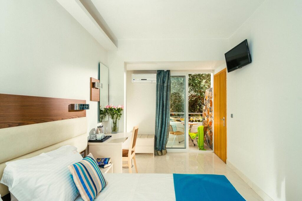 В 70 км от аэропорта г. Ираклион, в 7 км от г. Агиос-Николаос, в курортном местечке Элунда.